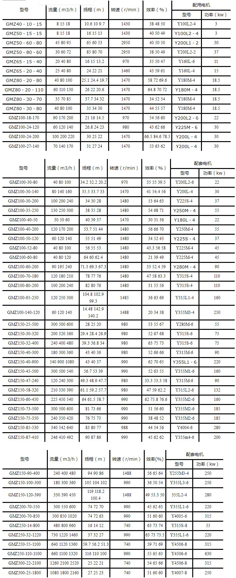 GMZ型渣漿泵(bèng)性能範圍: 流量(liàng)8-2600m3/h