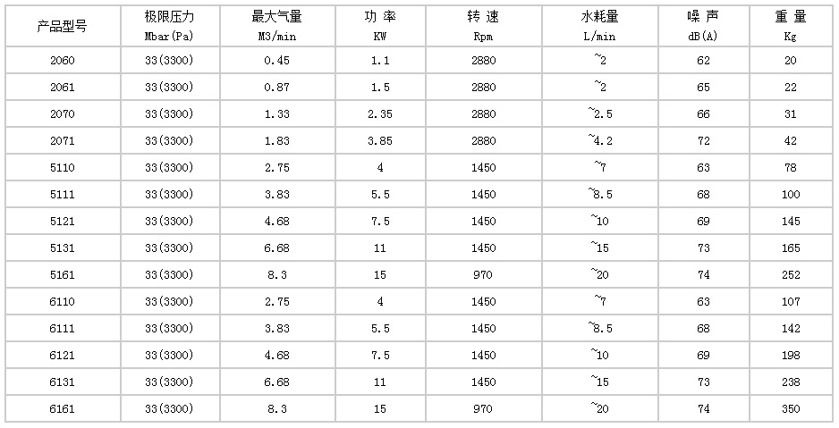 2BV型水環式真空泵(beng)的主要技術數據(ju):