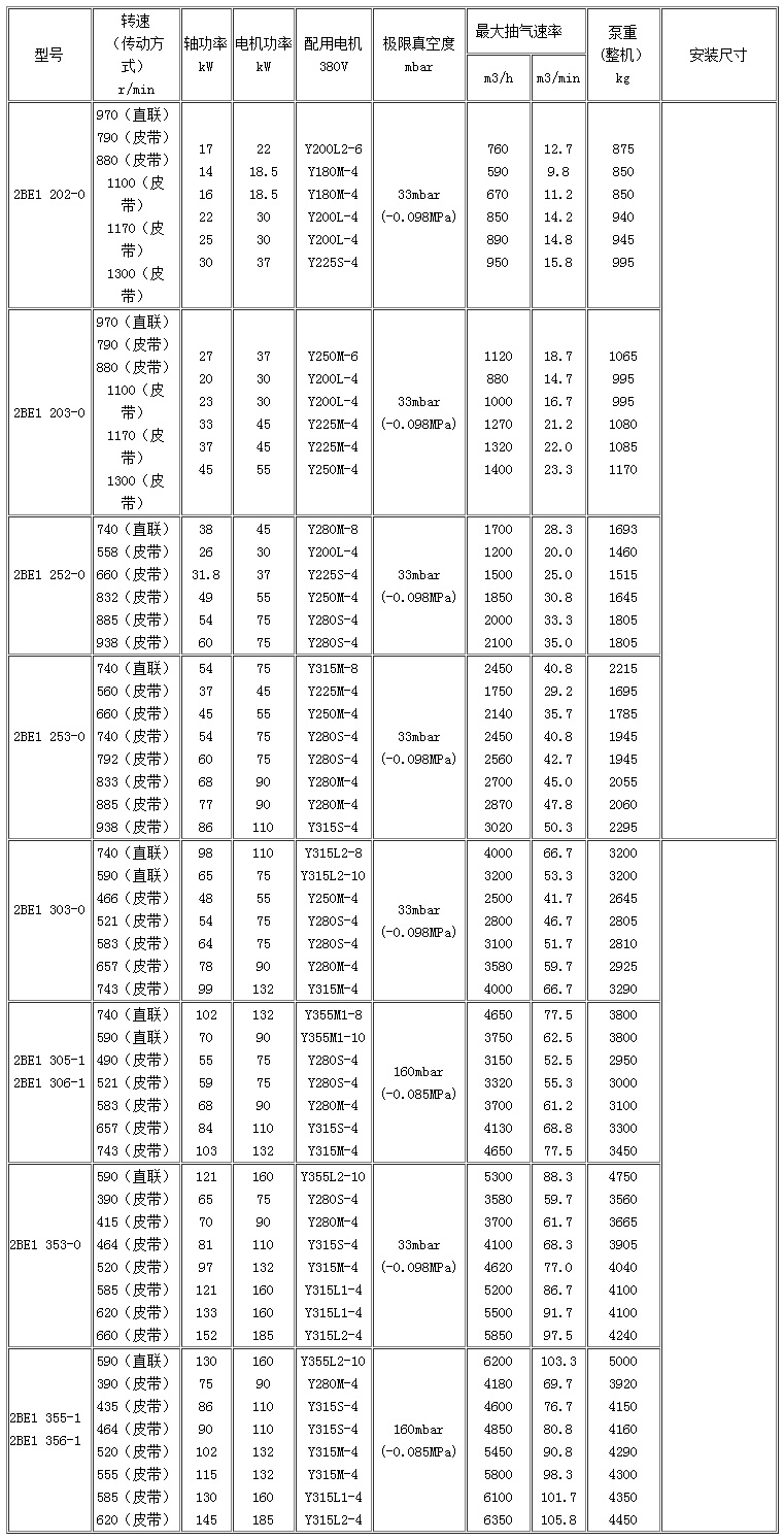 2BE系列水環式(shi)真空泵技術參數(shu):